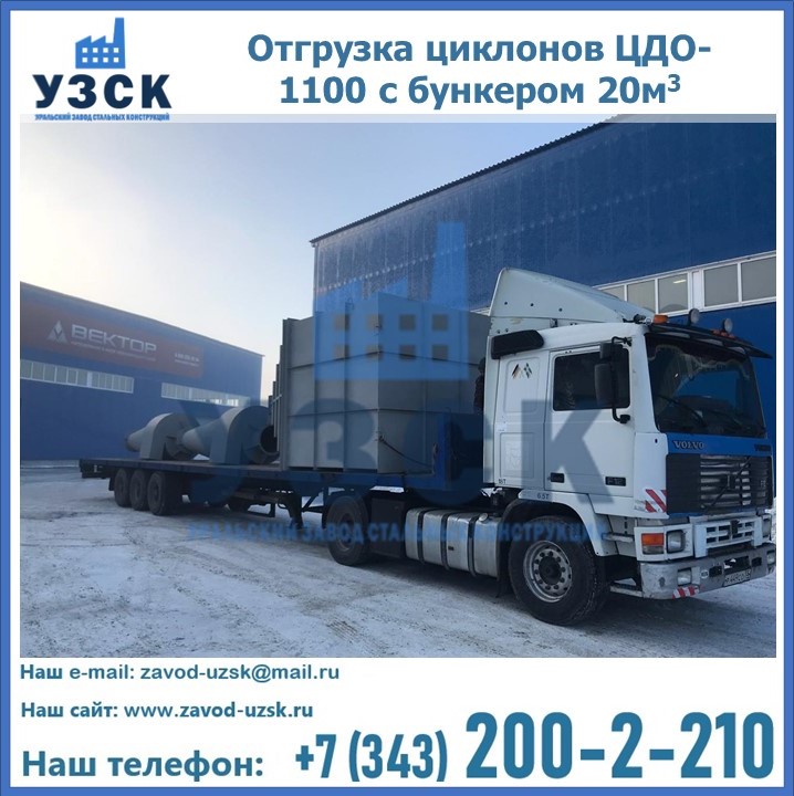 Циклоны ЦДО-1100 с бункером на 20 кубов были отгружены в декабре 2018 года в г. Новосибирск Мурманск.