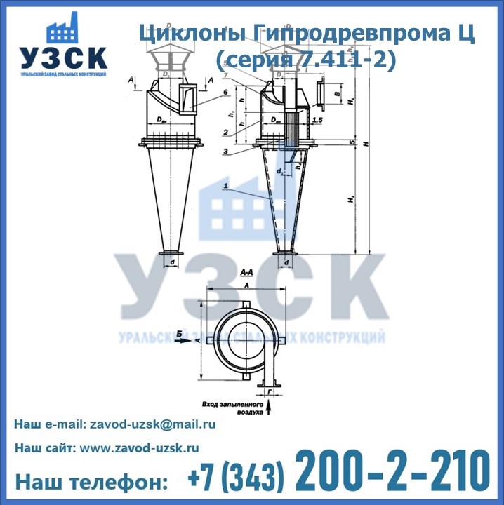 Циклоны Гипродревпрома Ц (серия 7.411-2) высокого качества можно купить в компании «УЗСК» в Мурманске. Наши специалисты предоставят всю необходимую информацию информацию и помогут с выбором модели циклона. Подробные технические характеристики, конструкцию, параметры, ассортимент и стоимость продукции можно также найти на сайте УЗСК.